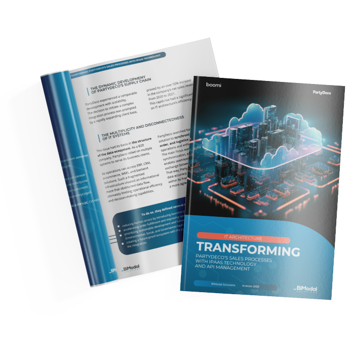 This case study, created in collaboration with PartyDeco – a Polish company with over two decades of experience as a B2B supplier of decorative goods – explores the real-world challenges that drove the need for system integration. It also outlines the decision-making process that led to the selection of Boomi as the preferred iPaaS platform.